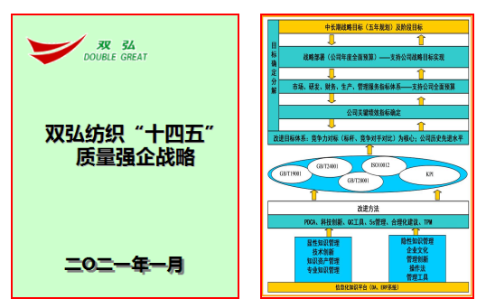 Calitatea este viața unei întreprinderi. În calitate de senior al companiei, tovarășul Ji Yijun a considerat întotdeauna îmbunătățirea calității drept prioritatea principală a companiei de mai bine de 40 de ani. Sub nava și influența sa, Double Great Company a introdus și a implementat modelul de management al excelenței performanței din 2007, formând misiunea „Fiecare fire este valoarea soarelui”, valorile de bază ale „inovației, calității, integrității și armoniei” și viziunii „longevității vieții, Evergreen Double Great”. Sloganul rafinat de management al calității „oricât de mică este calitatea, este o mare afacere, oricât de dificilă este calitatea, trebuie să se facă bine, iar angajații care nu acordă atenție calității nu sunt angajați buni” a fost încorporat în aforismele de calitate ale companiei, iar calitatea de calitate „Calitatea va avea o piață” a devenit un concept de calitate cunoscut prin intermediul întregii companii și a fost promovat și a fost promovat o piață pentru întreaga industrie prin intermediul întregii companii și a fost promovată și a diseminat pentru întreaga industrie în întreaga companie din China.