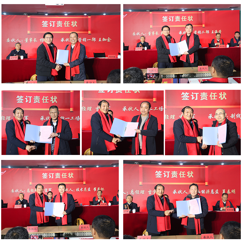 În cadrul ședinței, șeful departamentului de marketing a semnat o scrisoare de responsabilitate a țintei de marketing cu președintele Yang Yang, precum și șefii atelierului de producție, tehnologia, echipamentele și alte departamente au semnat sarcini de producție și, respectiv, scrisori de responsabilitate de muncă cheie cu directorul general Ji Yijun.