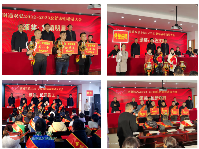 Diligența aduce primăvara timpurie și este timpul să te îndrepți înainte. Pe 8 februarie, Nantong Double Great Company a organizat o întâlnire măreță pentru a rezuma și a lăuda anul 2022 și pentru a mobiliza activitatea pentru 2023. Colectivii avansați, persoane avansate, Stars Marketing, Grupuri câștigătoare de premii QC, premiați, proiecte de inovare, reprezentanți câștigători ai premiilor, toate membrii partidului, managerii de la nivel mediu, profesionist și personal tehnic, echipe ERS, echipe de operare, etc.