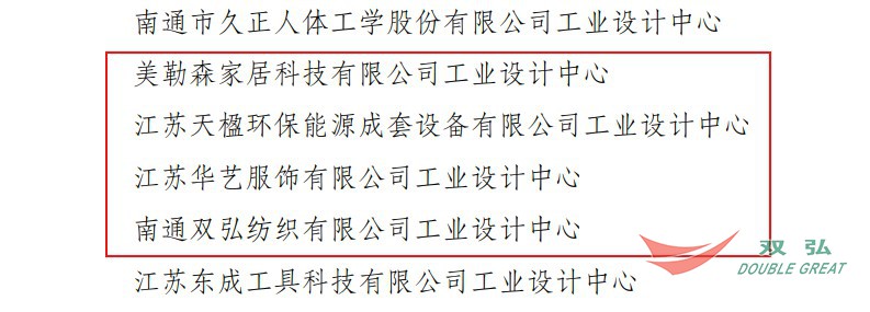 Recent, a fost aflat de la Departamentul Provincial al Industriei și Tehnologiei Informației din Jiangsu că Centrul de proiectare industrială din Nantong Double Greatile Textile Co., Ltd. Titlul Centrului de proiectare industrială Jiangsu în 2022 .